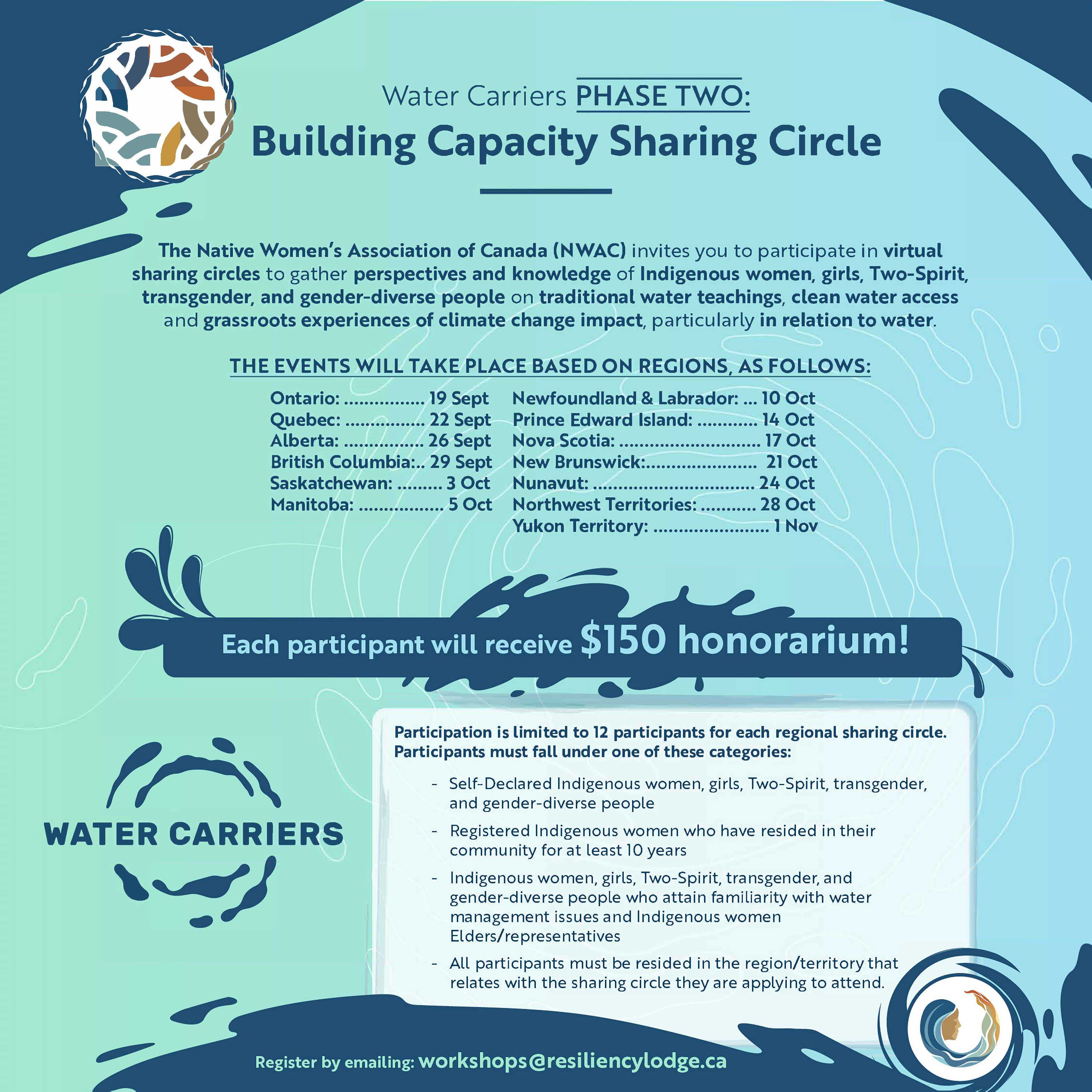 The information gathered through these engagement processes will be used to develop reports highlighting regionalized issues, the matters of concerns (related to water) to indigenous communities within those regions and their recommendations for inclusion of Indigenous women, girls, and gender diverse individuals in decision-making